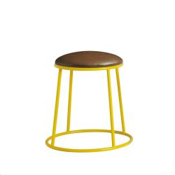 Industrial Designer Stool with upholstered seat. Our popular MAX stools are now available fully upholstered in premium Lascari faux leather in Rustic Brown. Available in black, red, yellow or clear lacquered for powder coating in a colour of your client’s choice.