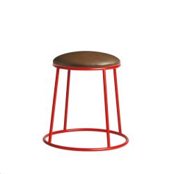 Industrial Designer Stool with upholstered seat. Our popular MAX stools are now available fully upholstered in premium Lascari faux leather in Rustic Brown. Available in black, red, yellow or clear lacquered for powder coating in a colour of your client’s choice.