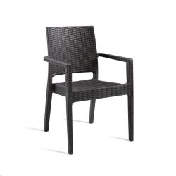 Premium quality stacking chair. Attractive, virtually indestructible dark grey wicker weave. Stackable to 6 high for easy storage. Can be used indoors and outdoors. CATAS Tested for severe contract use. Cert. ref 157230/12. Manufactured from highest quality weather resistant glass reinforced resin. Frame designed and manufactured so that it will never unravel, rust or decay tool weights just 6kg – the ideal weight for moving and stacking. Wicker weave is quality checked and protected for UV rays to ensure colour will not fade. Frame designed and manufactured with no sharp edges or corners for added safety. Stool has passed all safety standards for stability, fatigue and durability.