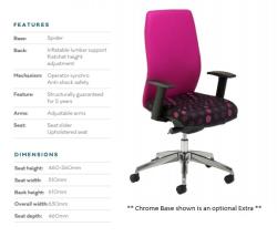 This Exquisit EQ22ADJ is a high end task chair, perfect for all office, meeting and professional spaces. The chair features a unique swan-curved back, inflatable lumbar support, back height adjustment and a seat slider as standard. It also features our Operator Synchro mechanism, which synchronises the back and seat tilt, so you can lock it in the optimum position for you or have it in free-float mode. This feature ensures your body profile remains brilliantly comfortable and supported.