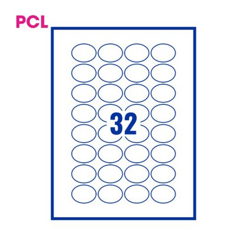 Pcl4030 White Perm Labels__Oval 32 Lab/Sht 6400/Bx 200Sh A4/Bx