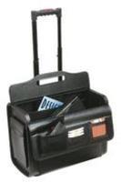 Data/Catalogue wheelie pilot case with fixed base wheels and retractable handle. Front and side pockets. Combination locks. Black. 480x360x230mm.