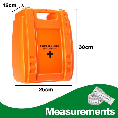 The Evolution Plus Critical Injury Bleed Control Kit (Medium) is specially designed to deal with critical, life-threatening bleeds. It is provided in a durable, hinged bright orange Evolution case, making it easily recognisable and engineered for the toughest conditions. The lightweight yet robust Evolution case makes the kit portable, allowing the first aider to take it directly to the site of the incident.