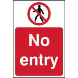 - No Entry sign is a 200mm x 300mm restricted access sign made from self adhesive vinyl, making it easy to apply to a clean dry surface. All our signs conform to the BS EN ISO 7010 regulation, ensuring that all graphical safety symbols are consistent and compliant.