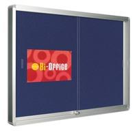Glazed lockable display board ideal for securely and safely displaying important material. Keeps display material safe and clean. Internal depth 55mm. Aluminium frame and track. Toughened glass sliding doors. Fire retardant blue felt. 100 x 70cm.
