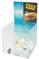 Deflect-O suggestion box with sign holder. Free standing clear box with holder to accommodate signs 203 x 375mm in size. Ideal for collections of business cards, raffles, suggestions and comments.